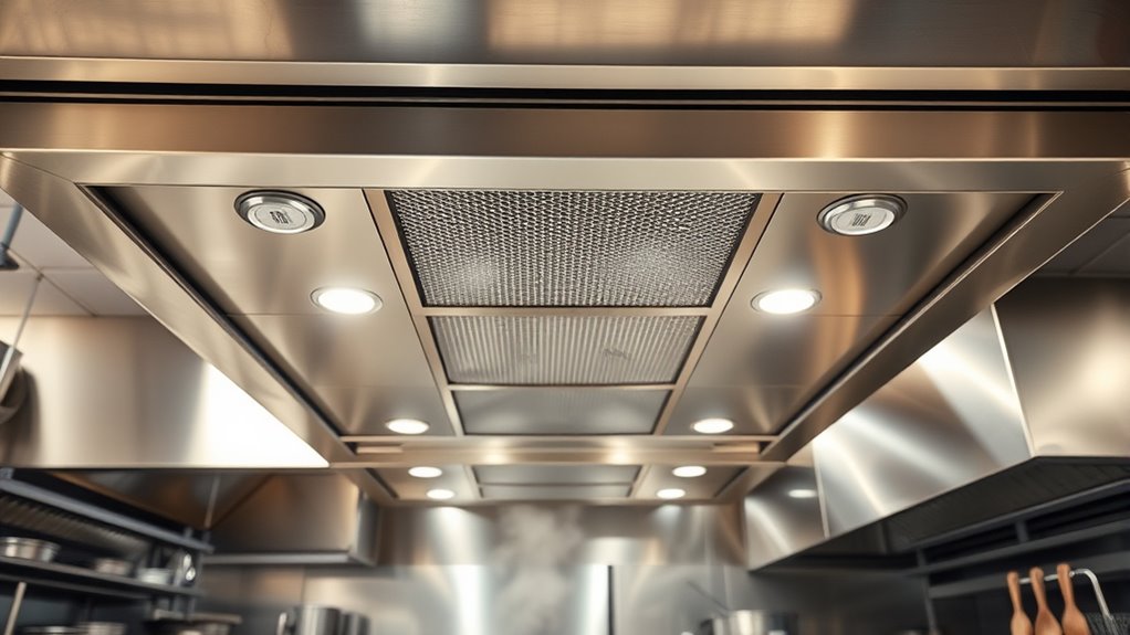 Maintaining clean air in commercial kitchens is essential for both health and safety, especially since cooking processes generate smoke, grease, and odors that can quickly compromise air quality. To guarantee a safe environment, you need to follow proper ventilation standards that are designed to handle the unique demands of commercial cooking spaces. These standards specify the amount of airflow required to remove airborne contaminants effectively and maintain a safe indoor environment. When your ventilation system meets these standards, you reduce the risk of smoke buildup, excess heat, and airborne grease particles that can impair visibility and create slip hazards. Proper ventilation also minimizes the spread of airborne bacteria and other pathogens, which is critical for food safety and sanitation.