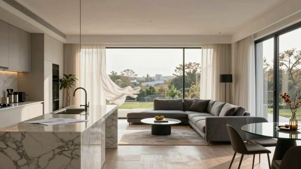 Balancing lighting design and privacy concerns in an open-concept home requires thoughtful planning. You want your space to feel bright and welcoming, but also private enough for different activities. It’s a delicate dance—adjusting lighting fixtures, adding partitions, and carefully arranging furniture—to create a comfortable environment. Ultimately, understanding these aspects allows you to enjoy the benefits of an open floor plan while mitigating its common pitfalls. With the right approach, your open-concept home can be both beautifully illuminated and perfectly private, giving you the best of both worlds.