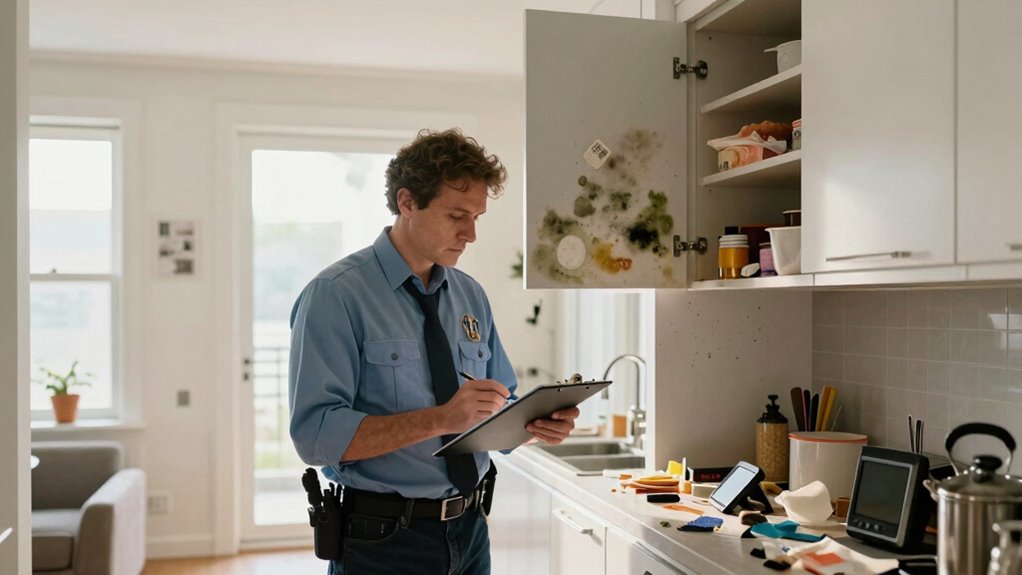 To investigate apartment odors, start by observing if the smell varies with certain times or activities, like cooking or laundry. Inspect your immediate environment for mold, garbage, or damp spots, then improve ventilation by opening windows or using fans. Talk to neighbors about similar issues and check shared systems like ventilation or plumbing leaks. If you follow these steps, you’ll be better equipped to identify and address the source—more details can guide your next move.