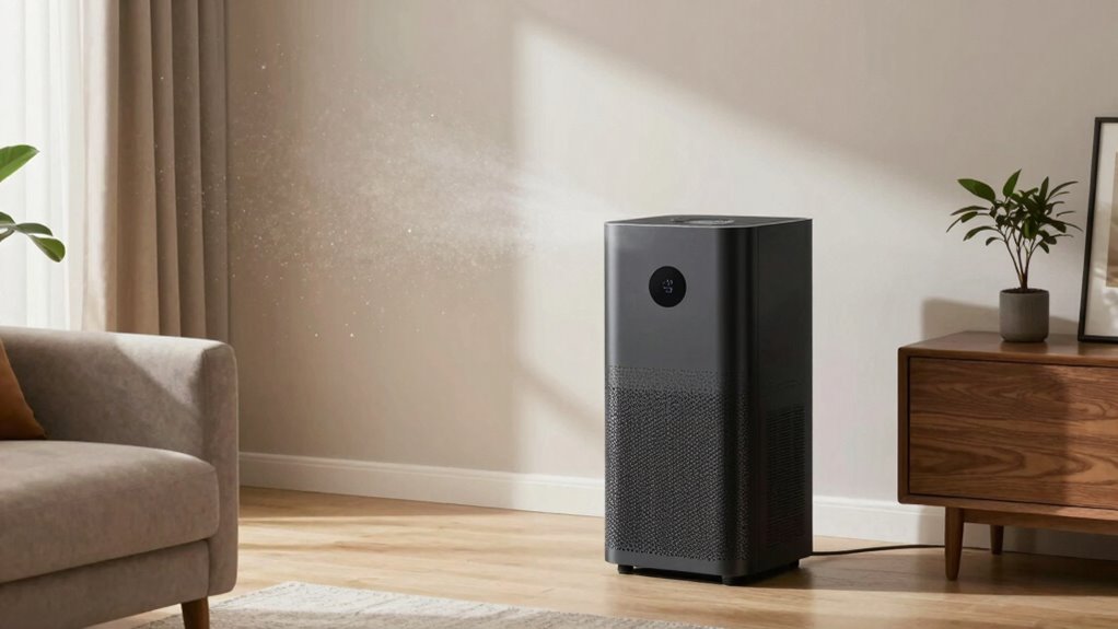 Choosing an air purifier for drywall dust means paying close attention to its filtration capabilities. HEPA filters are vital because they capture 99.97% of particles as small as 0.3 microns, effectively trapping drywall dust. While activated carbon filters help reduce odors, they’re less efficient at trapping fine dust particles. A MERV rating of at least 13 is recommended to guarantee the purifier can handle drywall dust and other fine contaminants. Regularly replacing filters according to manufacturer instructions is essential to maintain their effectiveness. Multi-stage filtration systems, combining pre-filters, HEPA filters, and activated carbon layers, provide thorough removal of drywall dust and related pollutants. Prioritizing filtration effectiveness guarantees cleaner air during and after drywall work.