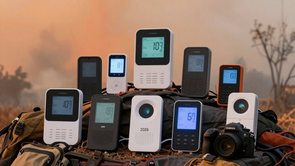 Battery life and portability are crucial factors to take into account because wildfire conditions can last for days, and I need my monitor to keep up without frequent recharging. A device with longer battery life ensures continuous air quality monitoring when charging options are limited. Portable monitors with rechargeable batteries make it easy to move between indoors and outdoors, providing an all-encompassing assessment of air conditions. Quick-charging features are also helpful, reducing downtime and allowing me to restart monitoring quickly after low battery alerts. Compact, lightweight designs improve ease of transport, so I can carry my monitor into cars, shelters, or outdoor areas without hassle. Higher-capacity batteries, measured in mAh, support extended use—often 12 hours or more—giving me peace of mind during prolonged wildfire events.