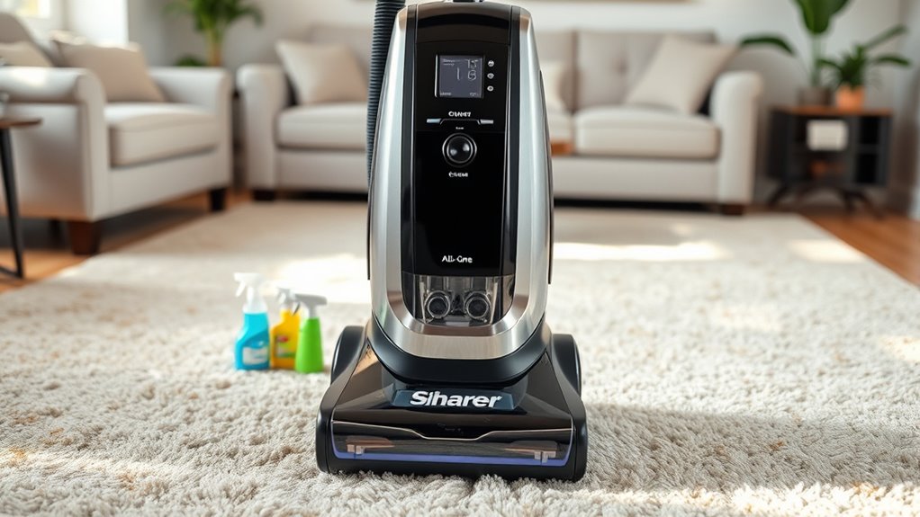 Once I tried tackling a stubborn stain with a basic cleaner, and it was like fighting a losing battle—frustrating and messy. That’s why I recommend investing in one of these all-in-one machines; they’re like having a trusted teammate by your side, making cleaning effortless. Just like a good team, they turn what used to be a chore into a breeze, saving you time, effort, and frustration. Trust me, your carpets will thank you!