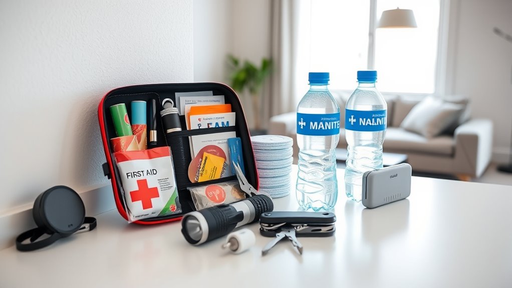 Prioritizing the right emergency gear for an apartment requires careful consideration of essential safety features and practicality. I focus on items like first aid kits, emergency blankets, and portable lighting since they prepare me for common urban hazards. Compact, lightweight gear is indispensable to save space and make storage manageable during emergencies. Multi-purpose tools and versatile supplies allow me to handle multiple scenarios without bulky equipment. High-impact items such as thermal blankets, signaling devices, and fire safety gear are critical for confined spaces. I also make a habit of regularly updating and practicing with my kit to guarantee I’m ready for real situations. By focusing on these key factors, I can maximize safety while maintaining convenience in my apartment.