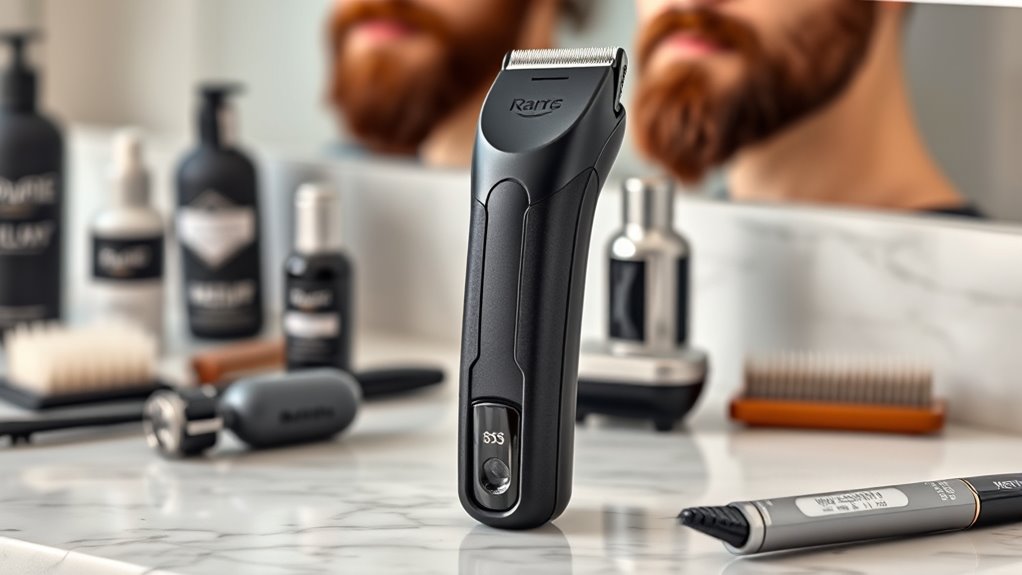 A beard trimmer with a long-lasting battery guarantees I can complete my grooming routine without interruptions, especially during full beard trims. Most vacuum capture trimmers offer between 60 to 120 minutes of cordless use per full charge, giving me plenty of time to finish without rushing. Fast-charging features are a real plus, allowing a quick top-up if I’m in a hurry. Battery indicators help me keep track of remaining runtime, so I avoid unexpected shutdowns mid-trim. Rechargeable models with extended battery life are especially convenient for travel or on-the-go grooming. Having reliable battery longevity ensures I can focus on achieving the perfect look without worrying about power loss, making the entire grooming process smoother and more efficient.
