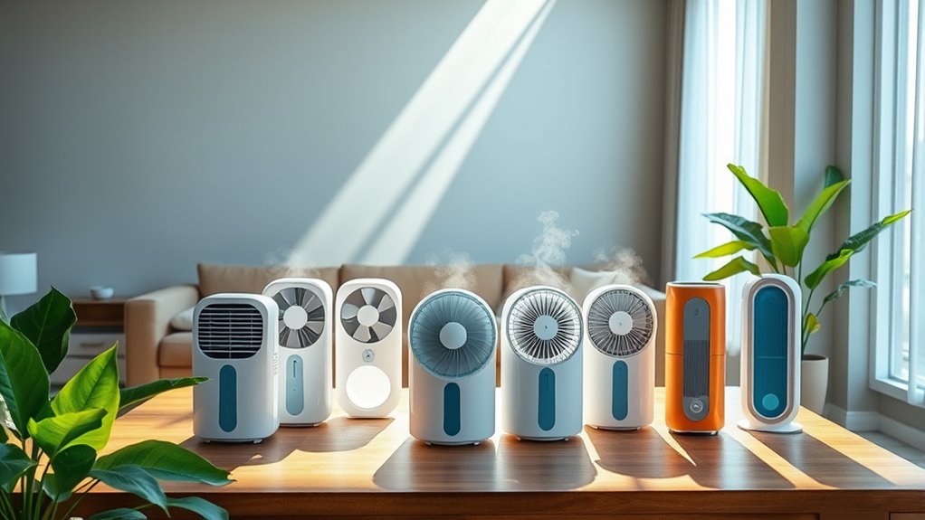 As summer heat swelters, finding the right cooling fan and air purifier combo feels like discovering an oasis in the desert. I remember last July, when the air was thick and suffocating, but my trusty fan-purifier kept me fresh and breathing easy. Just like a cool breeze can refresh a parched throat, the right combo can transform your indoor space. So, invest wisely, and let these combos keep your summer cool and your air clean.