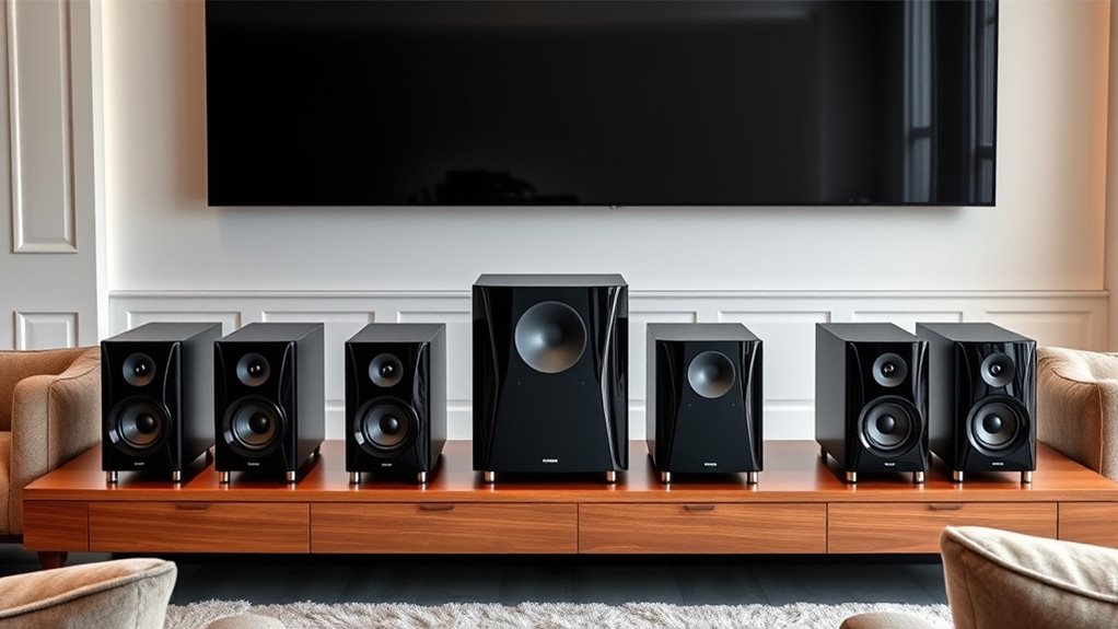 Ever wonder which systems deliver the most immersive Dolby Atmos experience? I’ve found that models like the Sonos Arc and the Bose Smart Soundbar 900 really shine, offering multi-directional sound that surrounds you completely. Their upward-firing speakers create a true sense of height, making movies and music feel alive. If you’re seeking a cinematic atmosphere at home, these systems are top contenders, blending stunning sound quality with sleek design.