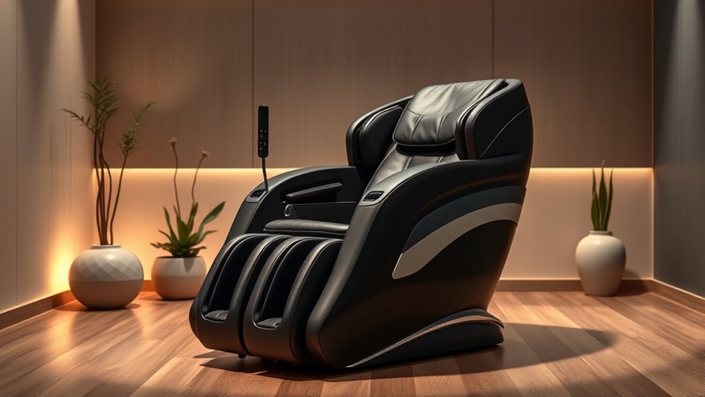 Luxury massage chairs stand out with their superior build quality, advanced technology, and personalized features. I notice they offer more extensive massage options, like zero-gravity positioning, heated surfaces, and customizable settings. They often have premium materials, sleek designs, and quiet operation. These details create a more indulgent, tailored experience that goes beyond standard models, making relaxation feel truly indulgent and worth the investment.