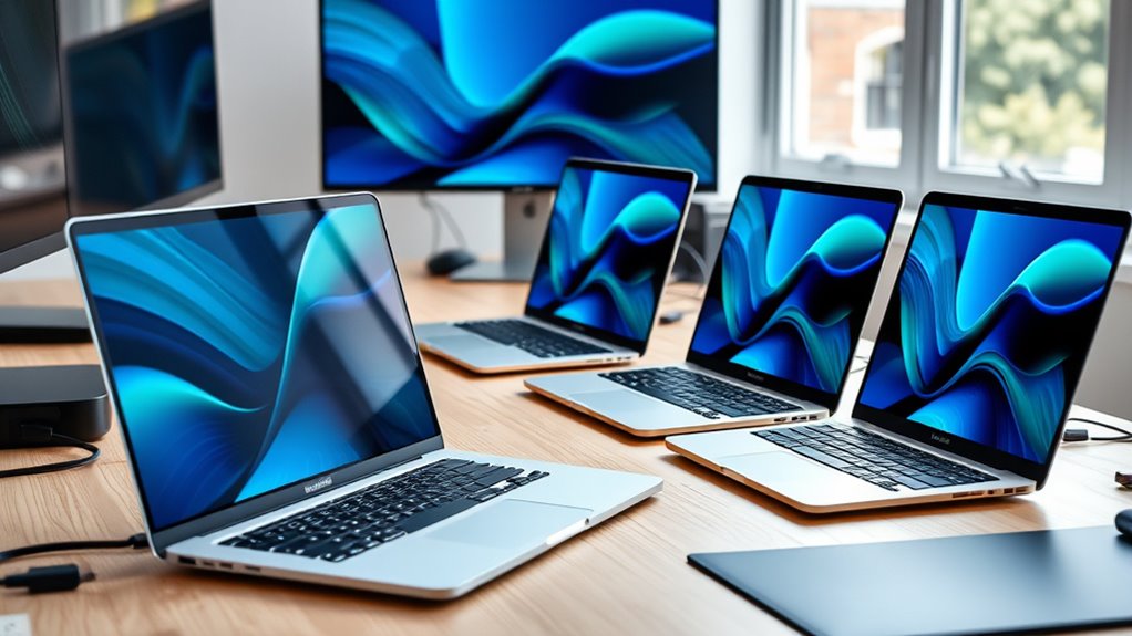 Long battery life is essential for data scientists and AI professionals who often work remotely or in environments with limited power outlets. MacBook Pros with larger batteries, like 100Wh or more, support extended usage, allowing me to process data or train models without frequent recharging. Portability is equally important; lightweight designs under 4 pounds make it easy to carry between meetings or different work locations. Efficient power management and fast-charging capabilities minimize downtime, so I can quickly recharge during intensive workflows. Additionally, supporting multiple external displays and peripherals without draining the battery guarantees a seamless experience. Overall, a MacBook Pro with impressive battery life and portability helps me stay productive, flexible, and efficient wherever I work.