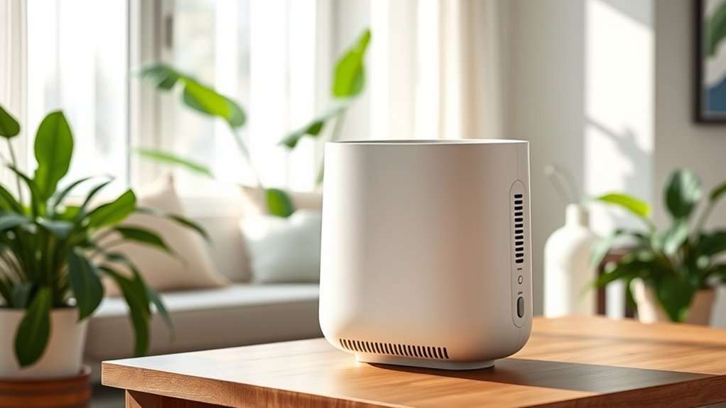 Ozone-free ionizer air purifiers are designed for easy maintenance, making them a convenient choice for many users. Unlike traditional models, they typically don’t require filter replacements, which saves time and ongoing costs. Most have simple plug-in designs with minimal parts, making cleaning straightforward. Regular dusting or wiping the exterior helps maintain peak ionization performance and ensures the device functions efficiently. While these purifiers don’t need filter changes, some models may have electronic components that benefit from occasional inspection or maintenance. Proper placement and routine cleaning are essential to keep them working effectively. Overall, their low-maintenance design allows you to enjoy cleaner air without the hassle of complex upkeep.