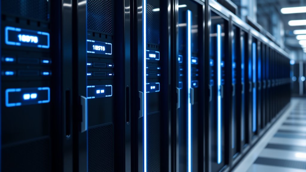 Premium NAS solutions guarantee maximum data security by incorporating advanced encryption protocols, like AES-256, to protect data both at rest and during transfer. I also rely on multi-factor authentication and regular firmware updates to patch vulnerabilities. Additionally, these systems often feature thorough backup options, RAID configurations for redundancy, and robust access controls, giving me peace of mind knowing my data stays safe from threats and hardware failures.