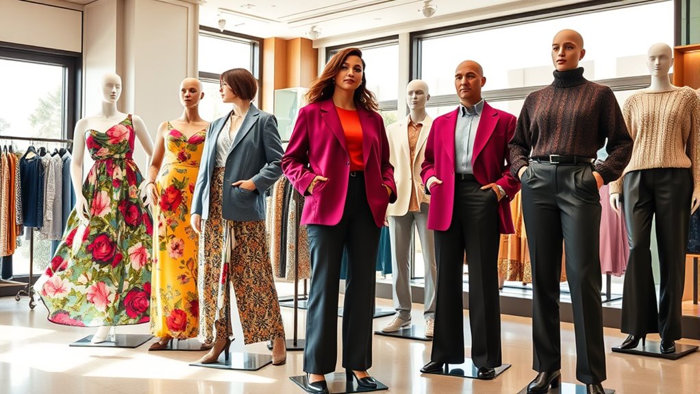 Ensuring a perfect fit starts with understanding how different brands handle sizing and measurements. Accurate sizing charts and detailed guides are essential for finding clothes that fit comfortably and flatteringly. I always look for brands that offer thorough size guides and customer reviews, as these help verify if the sizing runs true or varies. Since sizing standards can differ across brands, it’s vital to check specific measurements before buying. Some brands incorporate stretch fabrics, elastic waistbands, and adjustable features, which enhance fit precision. Consistent quality control is a must—clothes shouldn’t be too tight, too loose, or misaligned. By paying attention to these factors, I can confidently select plus-size pieces that fit well and boost my comfort and style.