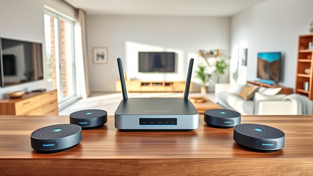 I get it—choosing the right mesh Wi-Fi system can feel overwhelming. But with these top-tier options, you’ll enjoy seamless, reliable coverage throughout your home in 2025. Don’t let concerns about complexity hold you back; modern systems are user-friendly and easy to set up. Trust me, once you’re connected, you’ll wonder how you ever managed without this level of smooth, consistent internet—your home’s connectivity just got a whole lot better.