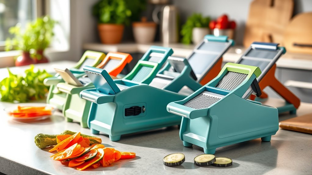 I’ve reviewed the 15 best professional mandoline slicers that can make your meal prep effortless. Each model focuses on safety and versatility, offering features like adjustable slicing thickness and multiple blade options. Tools like the VEVOR and All-in-1 Update Mandoline combine user-friendly designs with durable materials. With such a range of options available, you’ll find the perfect slicer for your kitchen needs. Stick around to discover which ones stand out the most!