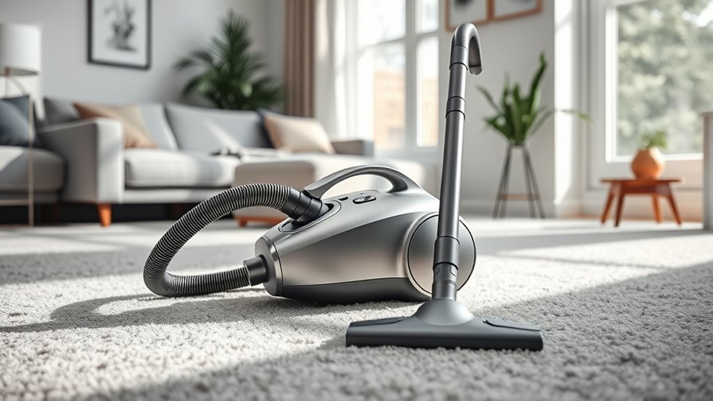 Have you ever struggled to move a bulky vacuum through tight apartment spaces? Lightweight canister vacuums, usually under 10 pounds, make maneuvering much easier. Their compact, portable designs often include telescoping wands and retractable cords, which boost ease of use and simplify storage. Being lighter reduces user fatigue, especially when cleaning multiple rooms or stairs, making the task less tiring. Small, lightweight models are also gentler on delicate furniture and flooring, reducing the risk of damage. Plus, their portability means quick setup and easy storage, perfect for limited apartment spaces. When choosing a quiet canister vacuum, considering weight and portability ensures you’re not only cleaning efficiently but doing so comfortably and effortlessly, even in tight spots.