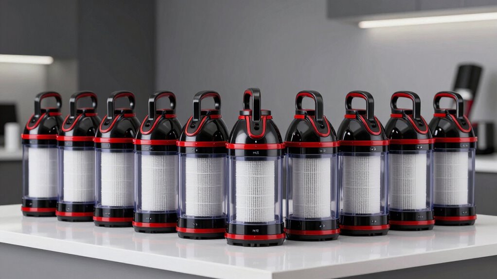 Sealed system HEPA vacuums do require specific filters, but they’re usually readily available from the manufacturer or authorized retailers. I find that replacing these filters regularly is essential to maintain ideal air quality and vacuum performance. It’s a good idea to check the user manual for recommended replacements and guarantee you use genuine filters to keep your vacuum functioning efficiently and to preserve its sealed system integrity.