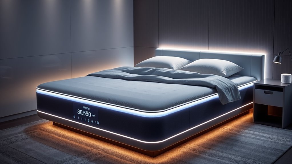 Imagine having a personal sleep coach right in your bedroom—that’s what sleep tracking features in smart beds do for me. They monitor my sleep patterns, analyze data, and reveal habits I didn’t realize I had. This insight motivates me to improve, whether by adjusting my bedtime or refining my sleep environment. It’s like having a gentle nudge toward better habits, making me more aware and intentional about my sleep every night.
