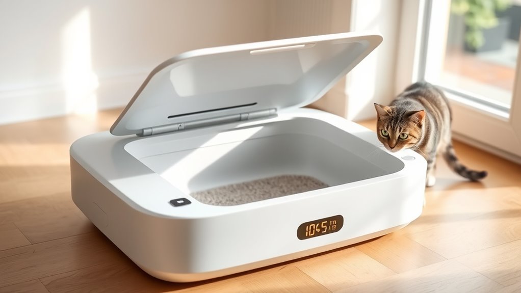 Looking for a hassle-free way to keep your cat’s litter box clean without constant scooping? A self-cleaning automatic litter box might be just what you need. It uses advanced technology to automatically clean and dispose of waste, with a pull-out drawer for easy bag changes. Its XXL capacity supports multiple cats and can go up to four weeks between cleanings. Safety features like infrared and weight sensors prevent accidents, while quiet operation at just 35dB keeps your home peaceful. Plus, you can control and monitor everything remotely through a smart app, making maintenance simple and stress-free for both you and your feline friends.