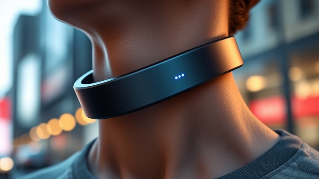 Choosing a wearable neckband air purifier that feels comfortable all day starts with paying attention to its design. I recommend selecting a lightweight model, ideally under 40 grams, so it doesn’t cause fatigue over time. Look for adjustable straps or flexible materials that fit different neck sizes securely without pinching or slipping. An ergonomic design with smooth edges and medical-grade silicone ensures the device won’t irritate your skin during extended use. Consider how breathable the device is—air should flow freely around your neck for maximum comfort. To conclude, choose a design that distributes weight evenly to prevent neck strain. A well-balanced, comfortable fit lets you go about your day without distraction, making it easier to breathe fresh air effortlessly.