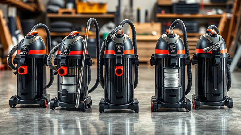 If you’re searching for the top wet-dry HEPA shop vacuums of 2025, I’ve got you covered. I recommend models like Dustless Technologies HEPA Pro Vacuum, WEN VC4710, Kenmore KW3050, Dustless Technologies D1606, and Vacmaster Blue Edition for their strong power, certified filtration, and versatile features. These vacuums effectively handle hazardous dust and debris, ensuring a clean, safe environment. If you continue exploring, you’ll find detailed insights to help you choose the best fit for your needs.