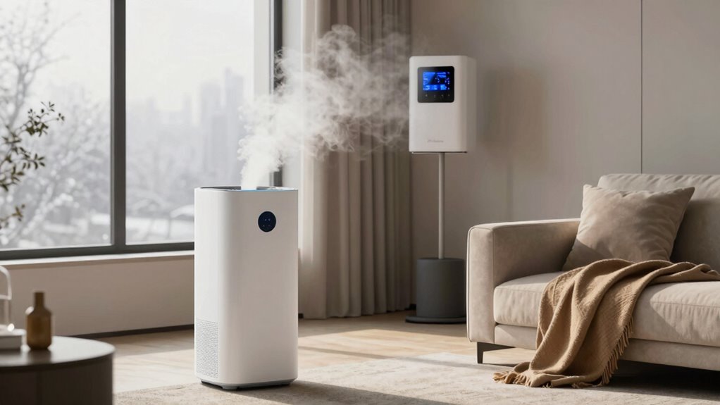 Choosing the right whole house humidifier can truly transform your winter comfort. Think of it like balancing a scale—you want enough moisture to ease dry air without overdoing it. By considering factors like room size and features, you can find the perfect fit. Just like a well-tuned instrument, the right humidifier keeps your home harmoniously comfortable, making cold months more bearable and healthier for everyone.