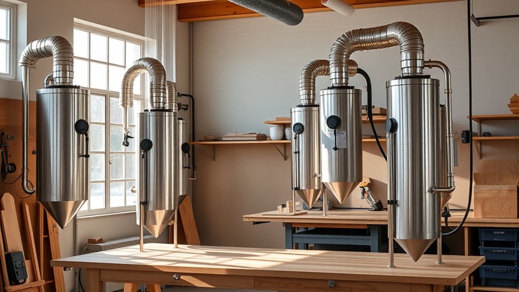 Although I love the efficiency of a powerful dust filtration system, I can’t overlook the importance of noise levels in my workshop. Noise levels typically range from 60 to 70 decibels, which can really disrupt my focus and comfort. I always prefer systems that operate below 60 dBA, especially since I often work in shared or residential areas. High noise levels not only require hearing protection but also contribute to overall noise pollution. When evaluating a system, I consider both the rated decibel level and where I’ll place it, as proximity can amplify the sound. I’ve also found that some filtration units come with noise-dampening features that keep things quieter without sacrificing airflow efficiency, making my workspace much more enjoyable.