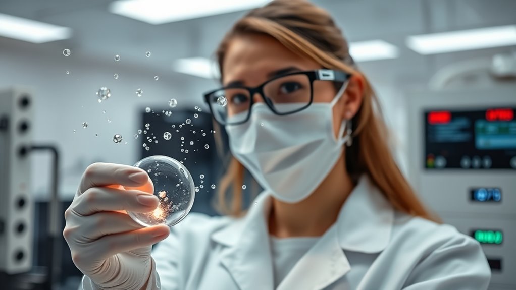 Bioaerosols are tiny biological particles like bacteria, viruses, fungi, or spores suspended in the air, and they can affect your indoor air quality and health. To protect yourself, monitoring bioaerosol levels using advanced sampling and detection methods is essential, especially in high-risk settings like healthcare or agriculture. Elevated bioaerosols may cause allergies, respiratory infections, or worsen asthma. If you continue exploring, you’ll discover effective strategies to measure and control these airborne hazards for healthier environments.