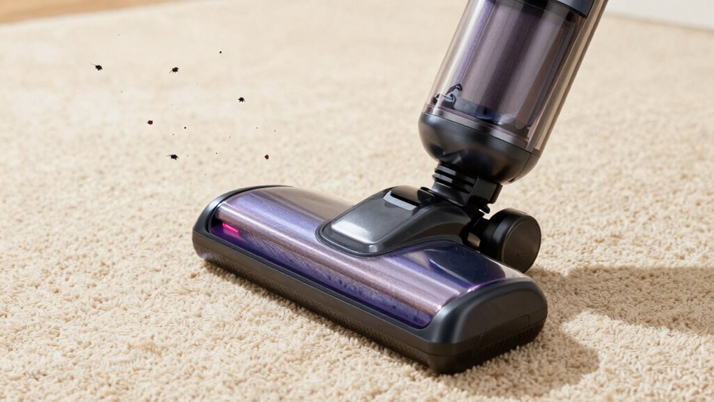 Sure, vacuuming seems thorough, but it can’t eliminate all dust mites. Vacuuming limitations mean mites hiding in deep cracks, upholstery, and bedding often escape. While regular vacuuming reduces surface mites, it’s not enough alone. To truly control mites, combine frequent washing of bedding, using high-efficiency filters, and reducing humidity. So, don’t rely solely on vacuuming—your mite-fighting arsenal needs more than that!