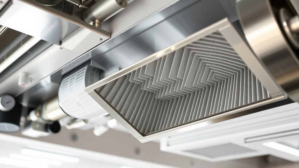 You should replace MERV 13 filters every 6 to 12 months to meet LEED compliance. Regular air filter maintenance ensures ideal indoor air quality and system efficiency. If your HVAC system has recent upgrades or operates in high-traffic areas, consider changing filters more frequently, around every 3 to 6 months. Monitoring filter condition and adhering to manufacturer recommendations help maintain compliance and indoor air standards effectively.