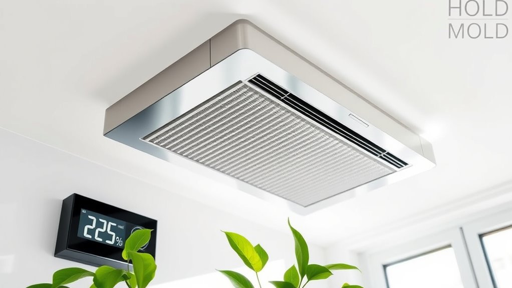 By maintaining your home’s humidity levels between 30-50%, you markedly reduce mold growth risks. Some believe that keeping humidity low alone prevents mold, but it’s not the whole story—you also need proper ventilation and regular cleaning. Think of HVAC as your home’s shield; it actively controls moisture and airflow. When used correctly, it’s proven that managing humidity is one of the most effective ways to prevent mold, so trust your system to keep your space safe and healthy.