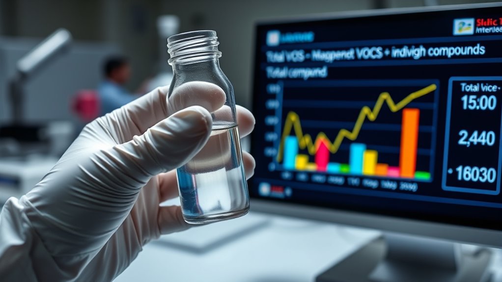 Once you’ve collected your samples, analytical methods come into play. Gas chromatography (GC) coupled with mass spectrometry (MS) is the gold standard for identifying and quantifying individual VOC compounds. This method separates the compounds based on their chemical properties and then detects them with high sensitivity. Alternatively, you might use photoionization detectors (PIDs) for real-time measurement of total VOCs, which provide rapid results but lack specificity for individual compounds. For measuring total VOCs, you could also employ Fourier-transform infrared spectroscopy (FTIR) or flame ionization detectors (FIDs), which give you an overall concentration rather than detailed profiles. Recognizing analytical method capabilities helps you select the most appropriate tools for your specific needs.