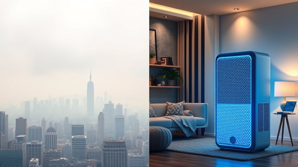 While indoor air purifiers do a great job cleaning your air, they can’t fully eliminate outdoor pollution influence due to their limitations. They excel at reducing indoor pollution sources but may struggle against persistent outdoor pollutants like vehicle emissions or pollen that seep inside. For ideal air quality, combine purifiers with good ventilation and outdoor air management, understanding that some outdoor particles might still linger despite your best efforts.