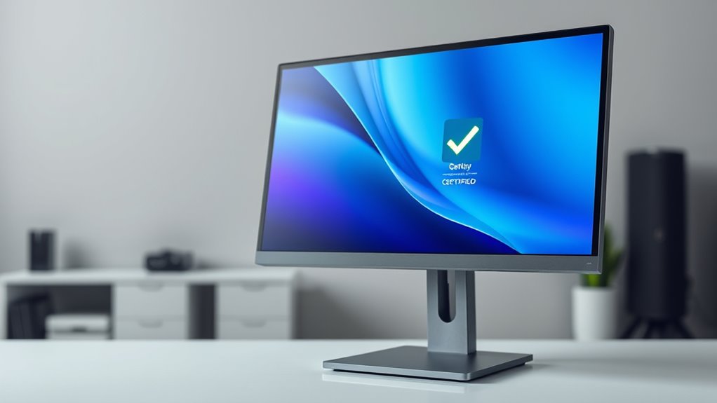 Think of RESET certification like a universal key, but it doesn’t open every door. It mainly applies to monitors from brands that meet specific certification criteria. While many popular brands participate, not all monitors are compatible or certified. You need to check brand compatibility and confirm your monitor meets RESET’s rigorous standards to qualify. So, don’t assume every brand automatically qualifies; verify to keep your device eco-friendly and compliant.