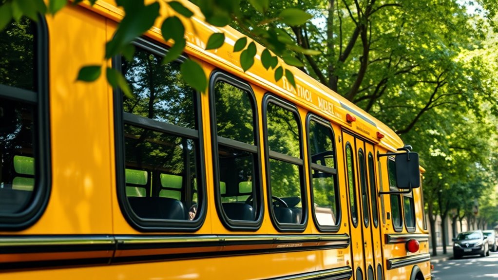 As you step onto the school bus, imagine it as a shield guarding young travelers from the invisible storm of pollution outside. By choosing cleaner fuels and better filters, you’re not just transporting kids—you’re safeguarding their future, turning each ride into a gust of fresh air. Together, you can paint a brighter, healthier horizon, where every journey is a gentle breeze, and the road ahead is clear and safe for every passenger onboard.