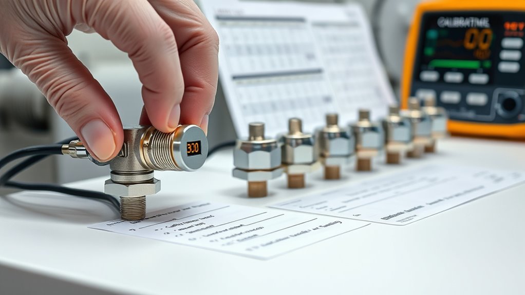 Monitoring sensor drift is essential. If you notice that measurements are gradually shifting or inconsistent, it’s a clear sign that calibration is overdue. Regular calibration checks help catch this drift early, maintaining measurement accuracy and system reliability. Implementing a calibration schedule based on historical data and environmental conditions can prevent unexpected failures and costly downtime. Developing a routine also helps in identifying patterns in sensor deterioration, so you can fine-tune your calibration frequency without unnecessary testing.