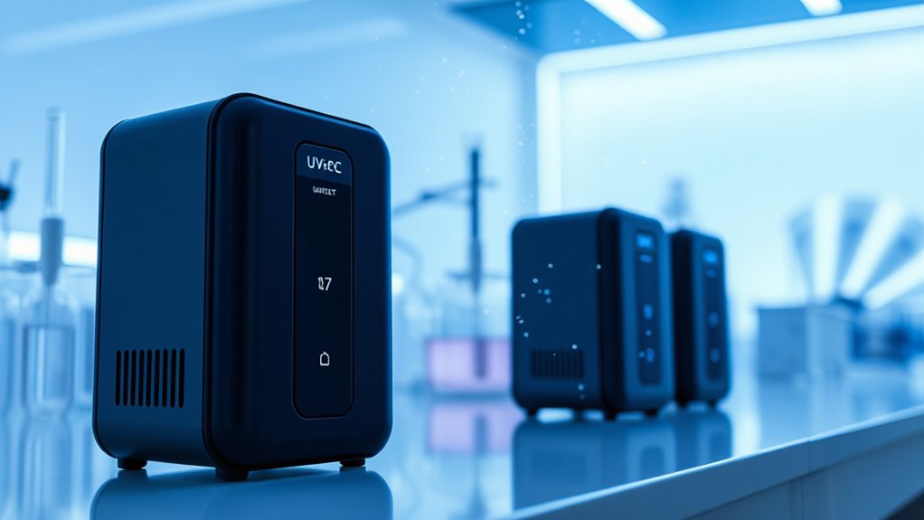 While UV-C air sanitizers effectively reduce airborne germs, some worry about safety or incomplete sterilization. Rest assured, modern units are designed with safety features to prevent UV exposure. Keep in mind, no sanitizer is perfect, but when used properly, UV-C devices considerably improve air quality. They’re a valuable addition, especially in crowded or high-risk spaces. Ultimately, combining these with good ventilation offers the best protection against airborne pathogens—making your environment safer and healthier.