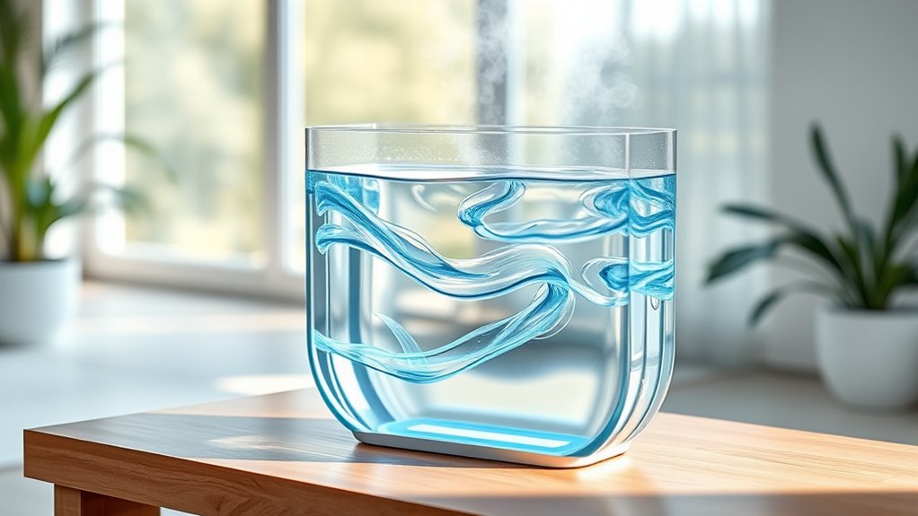 Water-based air purifiers clean your air by using water to trap dust, allergens, bacteria, and gases, making your environment healthier. They draw air into a water chamber where pollutants dissolve or get caught, reducing airborne contaminants effectively. These purifiers are eco-friendly, easy to maintain, and can neutralize odors and VOCs alongside particles. To discover how these systems provide a natural, all-encompassing clean, keep exploring the details behind their innovative technology.