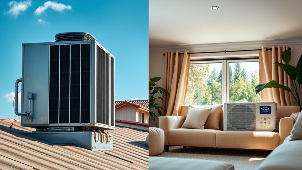 Imagine a steady river flowing, quietly saving you money over time. Both system types can offer cost savings and long-term affordability, but your choice influences this flow. Whole-house units often reduce energy bills with their efficiency, while room units can be more budget-friendly initially. Consider your needs and future plans to find the option that guarantees ongoing savings, keeping your comfort and finances balanced smoothly over the years.