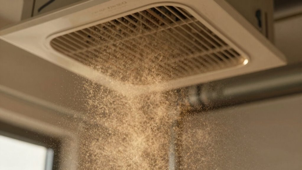 When your HVAC system isn’t set properly, dust can quickly become a problem, leading to unexpected blooms of allergens and dirt. These dust blooms can markedly impact your indoor air quality, making it harder to breathe comfortably and increasing the risk of allergy symptoms. If your HVAC settings aren’t optimized, you might notice an increase in dust settling on surfaces or sneezing fits that seem to come out of nowhere. Properly managing your system isn’t just about comfort; it’s about maintaining a healthier environment and controlling allergens effectively.